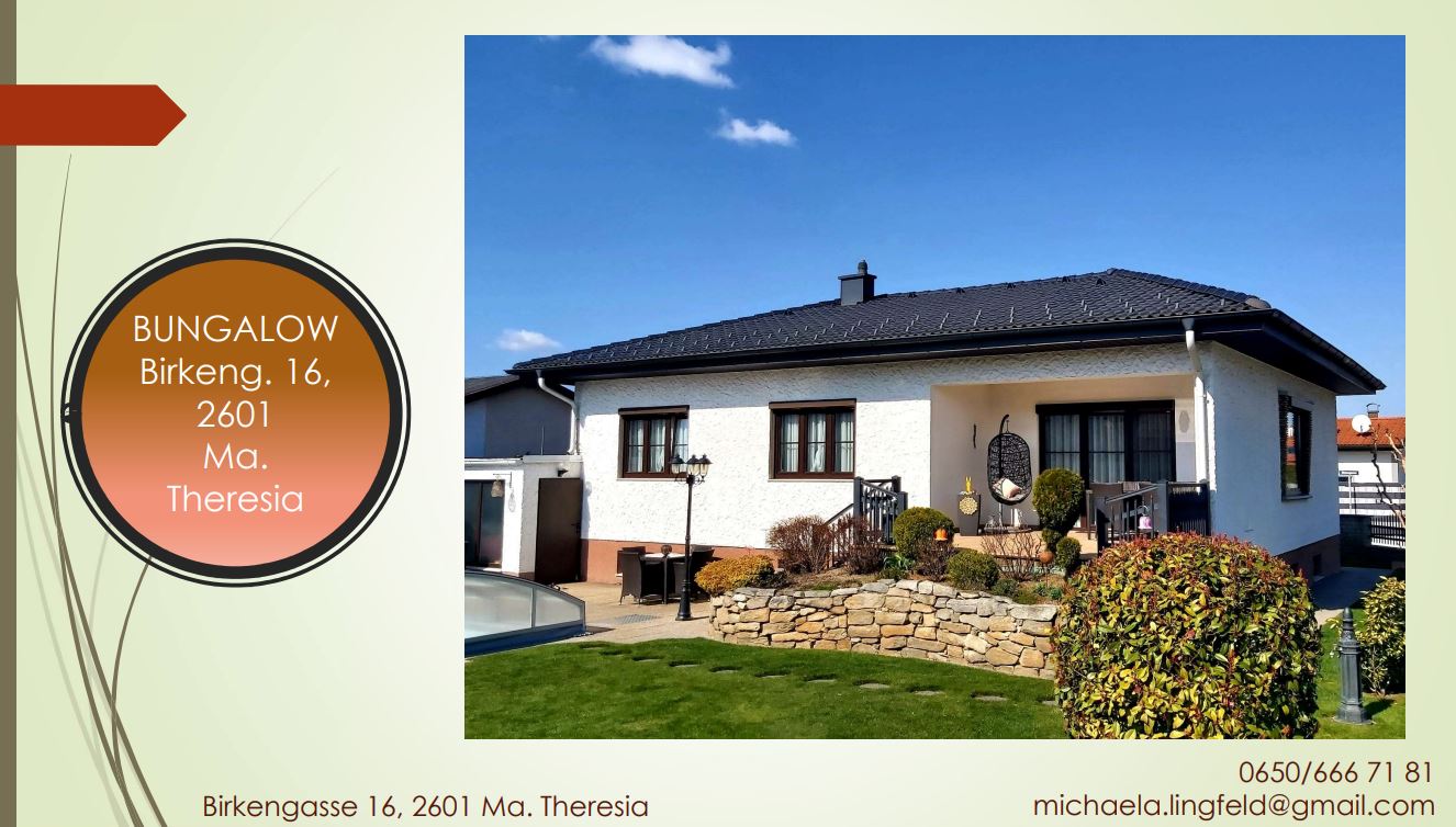 Top-renovierter Bungalow mit überdachtem Pool, Klima in 3 Räumen, Vollmöblierung inkl. Einbauküche, Alarmanlage, Kaminofen, automatischer Bewässerung, Auto-Mower, Alu-Zaun, uvm., Doppelgarage, komplett unterkellert, (€ 490.000,-) in 2601 Siedlung Maria Theresia